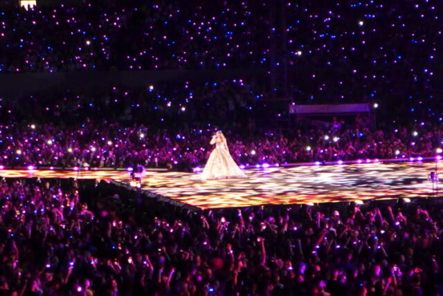 Desde el momento en que las luces se apagaron y los primeros acordes resonaron en el estadio, la multitud estalló en un frenesí de emoción y alegría. Taylor Swift apareció en el escenario con una energía arrolladora, desplegando su indiscutible presencia escénica y su voz poderosa.